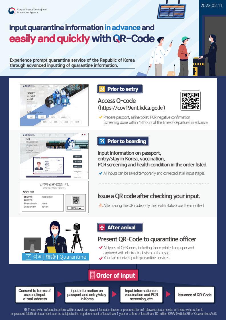 Please note that nationals of 22 countries/regions can still apply for K-ETA, and K-ETA application fee is 10,000 KRW/per person (around 9~10 USD, additional fees not included). Those who have the K-ETA are not required to submit an arrival card at the port of arrival.