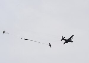 The Pyramids of Giza appear in the distance as a U.S. Air Force C-17 Globemaster III aircraft flies over Cairo, Egypt, during Exercise Bright Star on Oct. 15, 2009. The C-17 crew is from the 437th Airlift Wing, Charleston Air Force Base, S.C. Bright Star is a joint international military airdrop