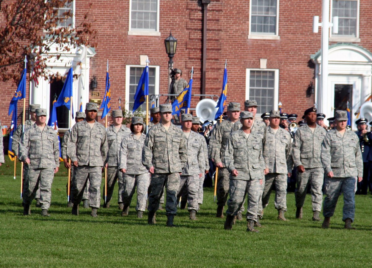 Air Mobility Command Airmen stand in formation during the AMC change of command ceremony on Nov. 20, 2009, at Scott Air Force Base, Ill. During the ceremony, Gen. Raymond E. Johns took command of AMC. (U.S. Air Force Photo/Tech. Sgt. Scott T. Sturkol)