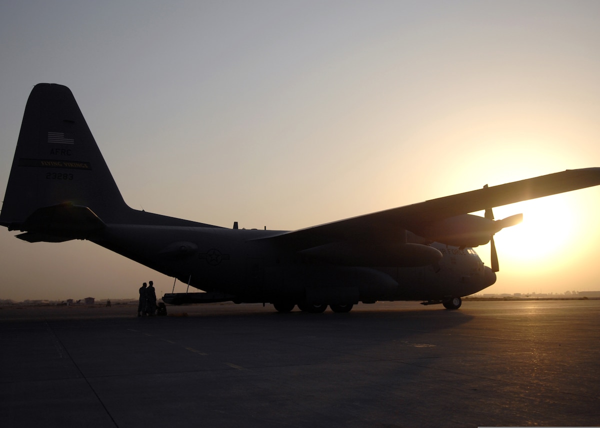 Master Sgt. Mark Groshek, 332nd Expeditionary Logistics Readiness Squadron aircraft service superintendent, helps guide a 60K Tunner away from a C-130 Hercules at the north ramp at Joint Base Balad, Iraq, on Aug. 26, 2009. The 332nd ELRS works with C-5 Galaxies, C-130 Hercules, and C-17 Globemasters for airlift and cargo operations at Balad. (U.S. Air Force Photo/Senior Airman Christopher Hubenthal)