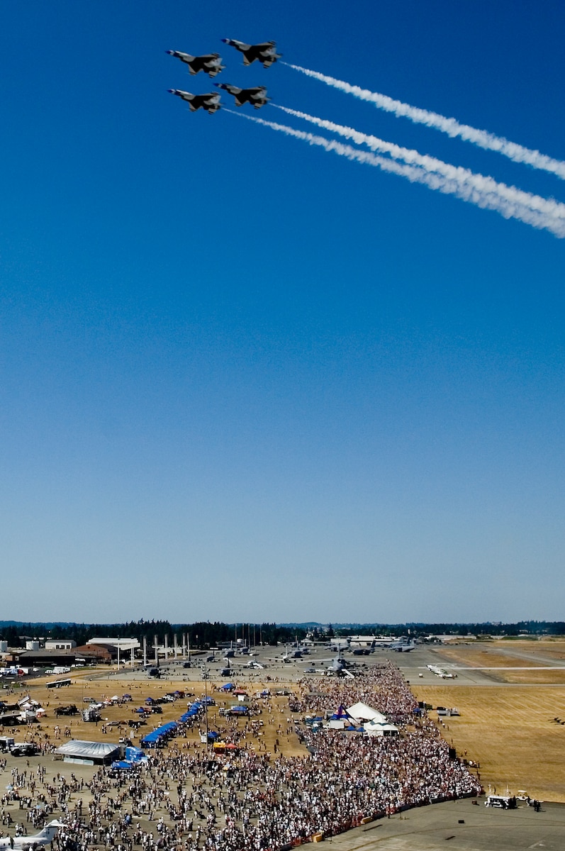 The McChord Air Expo 2008 crowd pours in around the C-17 Globemaster III on static display July 19 and 20. The two-day event drew 377,616 people allowing McChord to say “thank you” to the surrounding communities for the support they show the base every day. This year’s theme, “Freedom, What it Takes!” allowed the community to get a glimpse of the pride, professionalism and capabilities of America’s finest. (U.S. Air Force photo/Abner Guzman)