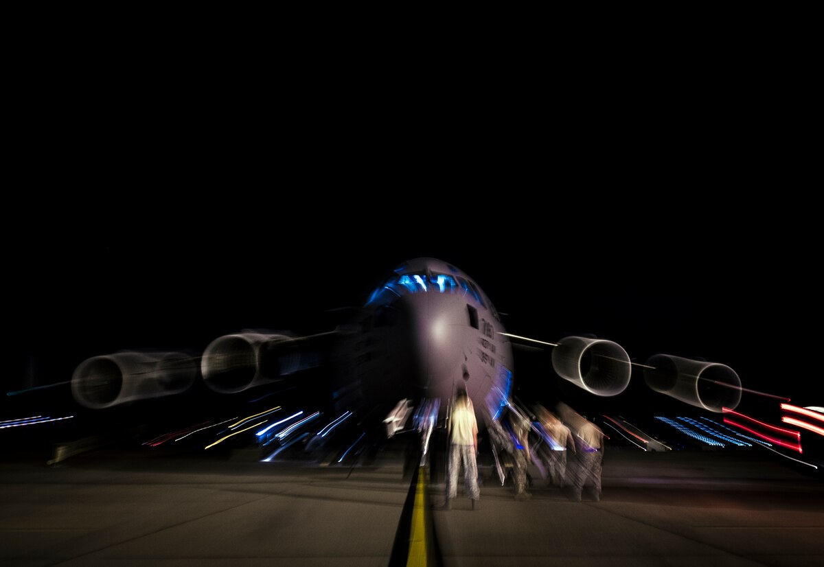 Senior Airman Mike Bowker, 437th Aircraft Maintenance Squadron crew chief, communicates with aircrew members inside the cockpit of a C-17 Globemaster III during pre-flight checks July 17, 2013, at Joint Base Charleston – Air Base, S.C. Airmen from the 437th Airlift Wing work around the clock on the flightline to provide combat-ready C-17A aircrews, mission support personnel and processes for 53assigned aircraft to meet White House, Department of State and Joint Chiefs of Staff-directed global deployment, employment and resupply of Department of Defense and allied forces via air land and airdrop operations.(U.S. Air Force photo/Senior Airman Dennis Sloan)