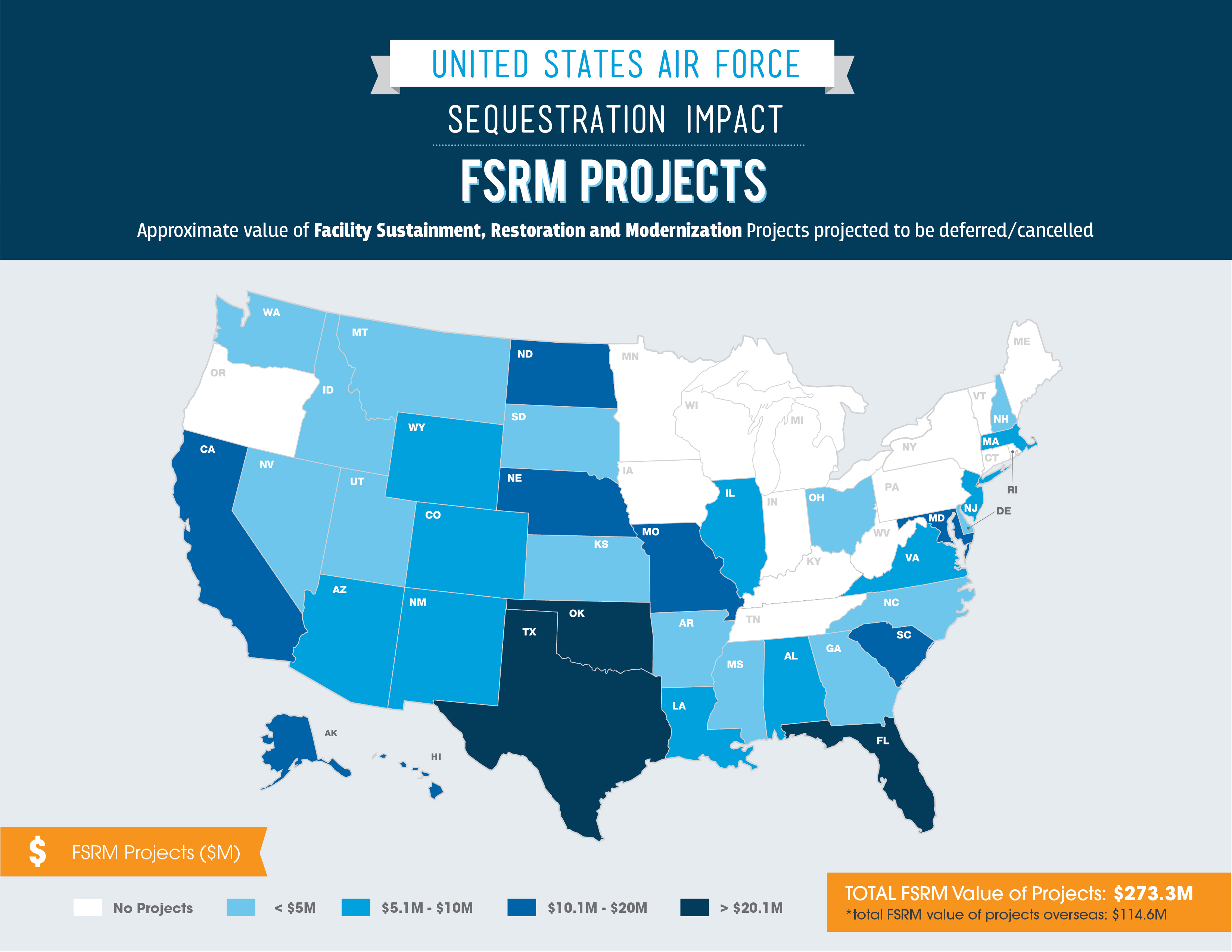 FSRM projects: approximate value of facility sustainment, restoration and modernization projects projected to be deferred/cancelled. (U.S. Air Force graphic)