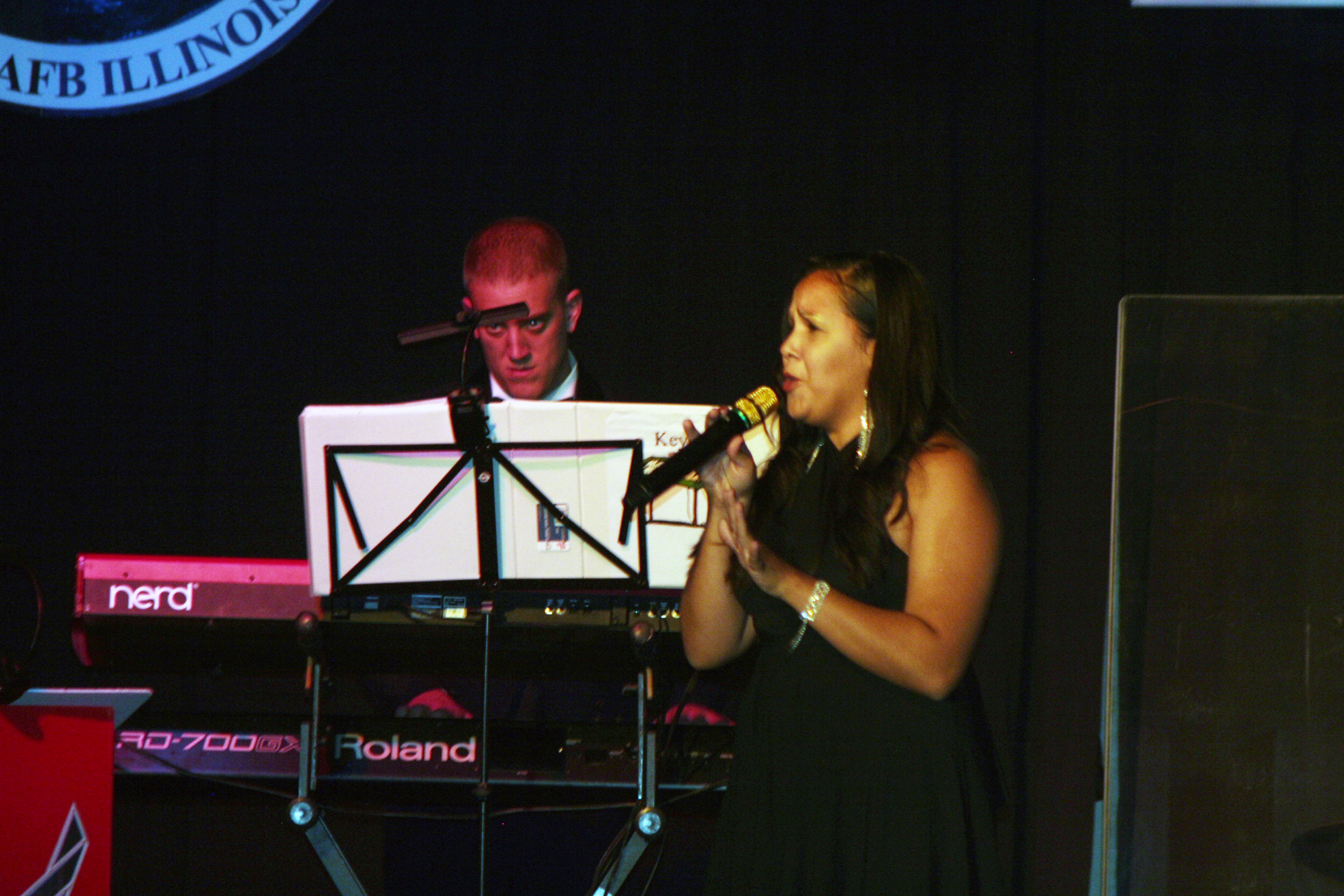 Staff Sgt. Kecia Harris sings "Broken-hearted Girl" during the Air Mobility Command Icon finals competition Oct. 20, 2011, at Scott Air Force Base, Ill. Harris made it to the finals by winning the base level competition at Travis AFB, Calif. Icon is an AMC commander's initiative to showcase the vocal talents of AMC Airmen. Each AMC base holds Icon contests in July and August to determine their representatives for the command final which takes place at Scott AFB. (U.S. Air Force Photo/Master Sgt. Scott T. Sturkol)