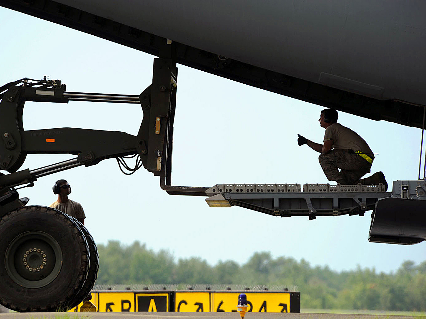 All of AMC's diesel-powered vehicles are capable of using bio-diesel fuel. Approximately 33% of the general purpose fleet can use ethanol fuel (1,300 vehicles). AMC also has 48 hybrid electric vehicles within the command. In this photo: Airmen prepare to unload cargo from a C-17 Globemaster III Aug. 18, 2011, at Joint Base McGuire-Dix-Lakehurst, N.J. (U.S. Air Force photo/Tech. Sgt. Joanna Hensley)