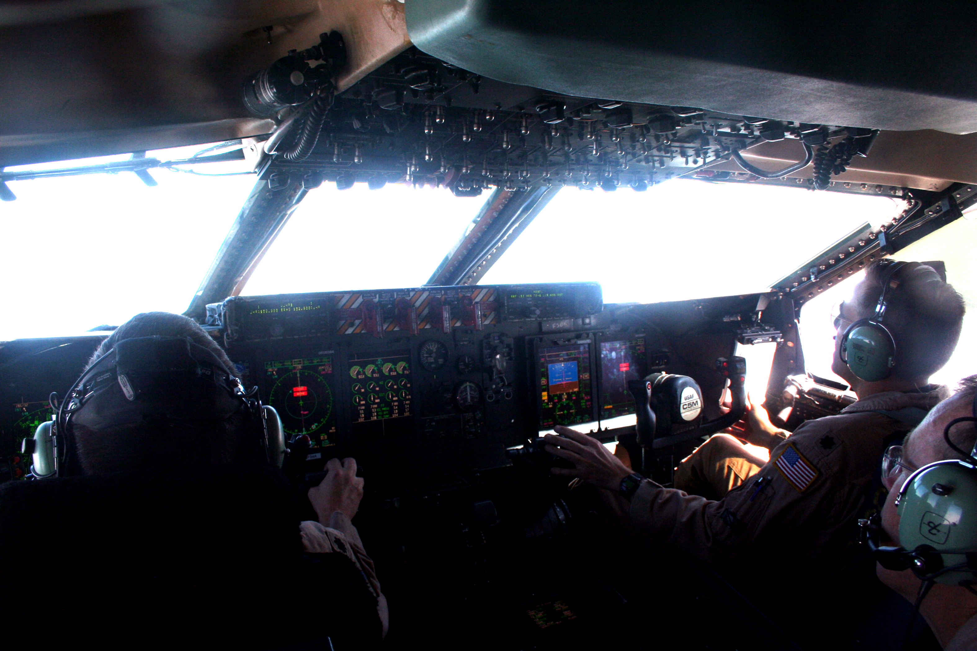 Lt. Cols. Thomas Loper and Scott Erickson, C-5 pilots, control a C-5M Super Galaxy as it departs for a mission on June 5, 2011. The plane was departing for the Air Force's first direct delivery airlift mission through the Arctic Circle from Dover Air Force Base, Del., to Bagram Airfield, Afghanistan. Colonel Loper is the 436th Airlift Wing director of staff and Colonel Erickson is from the Air Force Reserve's 709th Airlift Squadron at Dover AFB. (U.S. Air Force Photo/Master Sgt. Scott T. Sturkol)