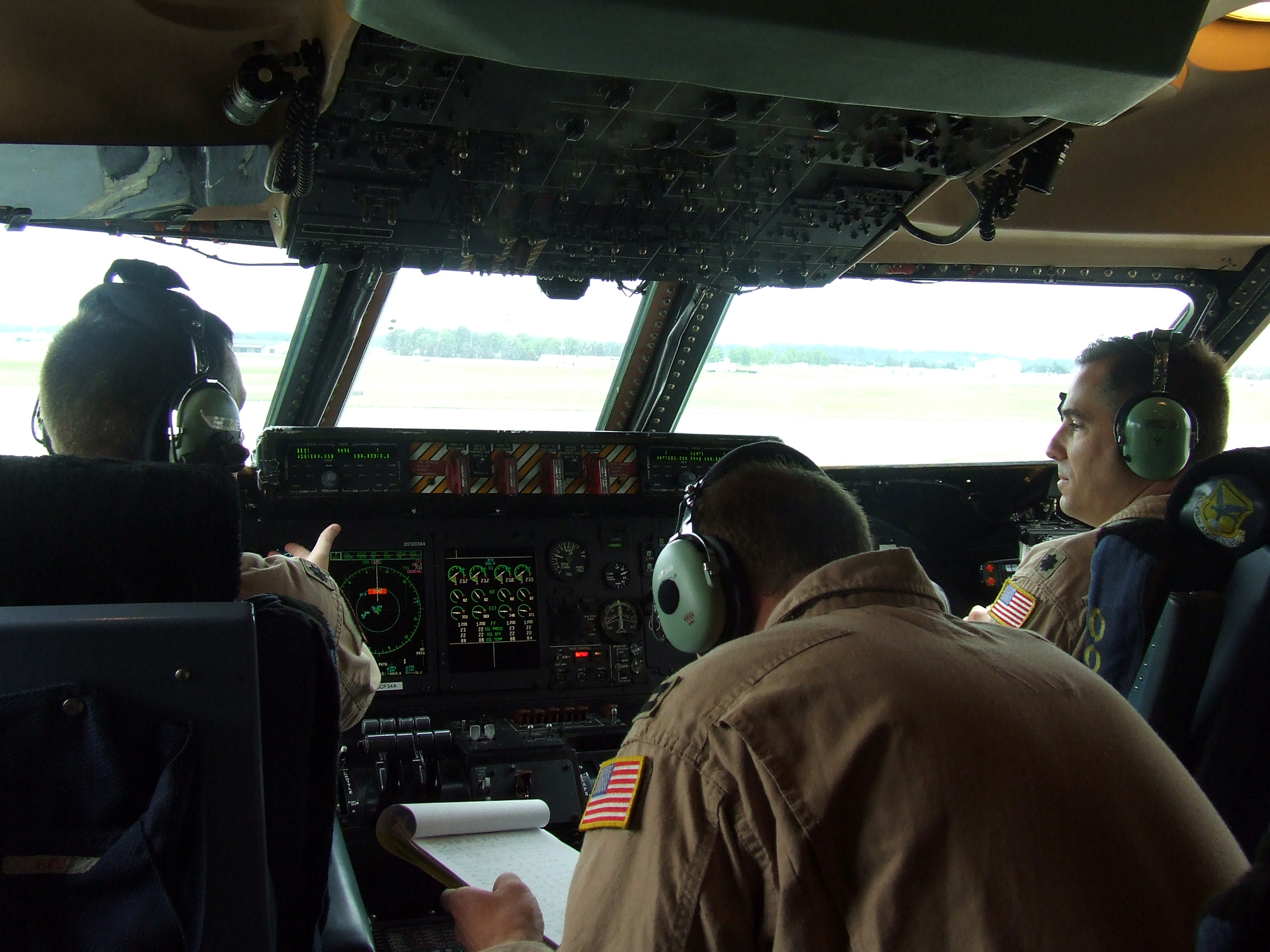Lt. Cols. Thomas Loper and Scott Erickson, C-5 pilots, control a C-5M Super Galaxy as it departs for a mission on June 5, 2011. The plane was departing for the Air Force's first direct delivery airlift mission through the Arctic Circle from Dover Air Force Base, Del., to Bagram Airfield, Afghanistan. Colonel Loper is the 436th Airlift Wing director of staff and Colonel Erickson is from the Air Force Reserve's 709th Airlift Squadron at Dover AFB. (U.S. Air Force Photo/Master Sgt. Scott T. Sturkol)