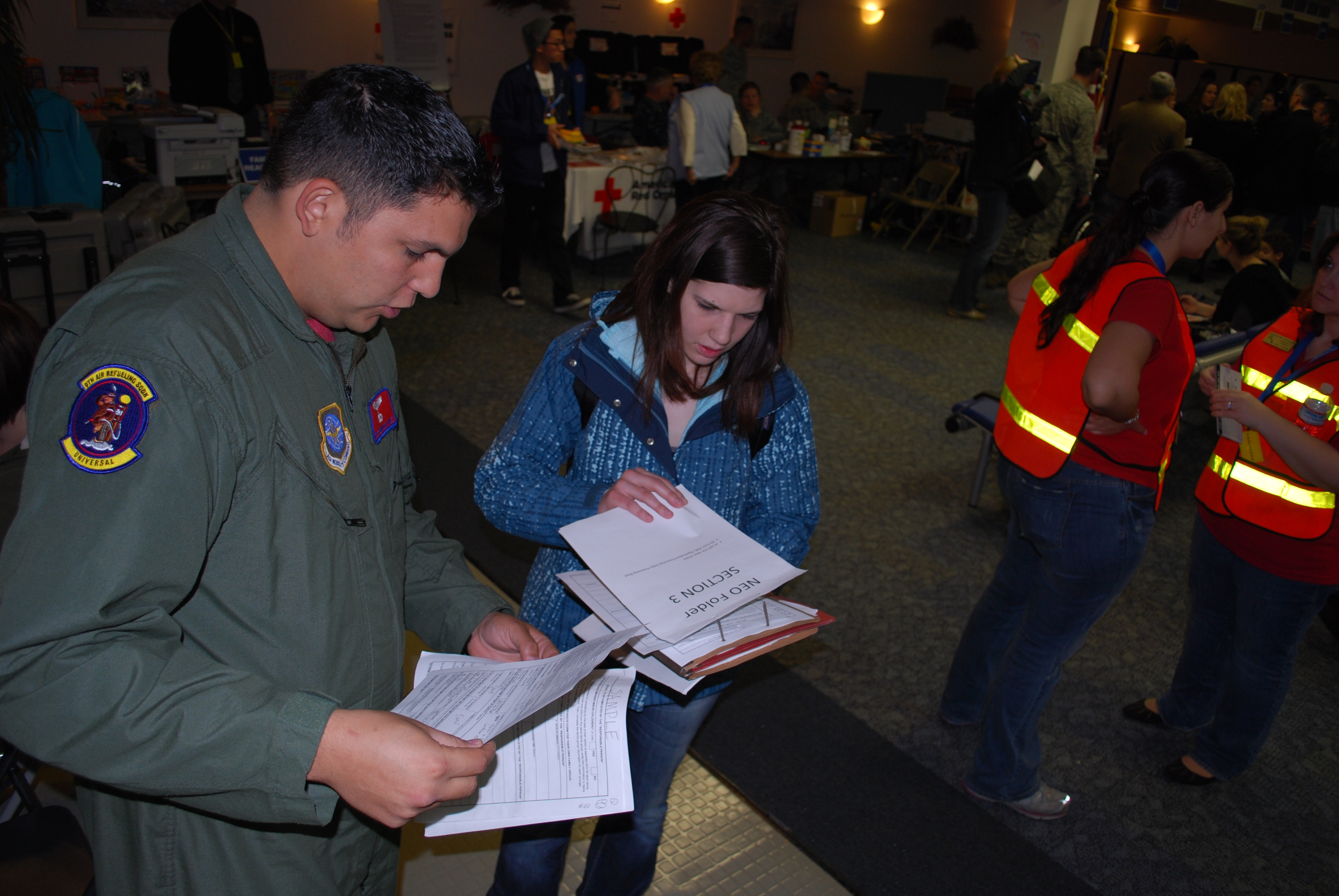 Military family members, their pets, Airmen and other service members process through Travis Air Force Base, Calif., on March 25, 2011, as part of Operation Pacific Passage. Shortly after an 8.9-magnitude earthquake and subsequent tsunami struck Japan on March 11, 2011, Department of Defense officials approved voluntary departures for DOD personnel and family members to return to the United States. U.S. Northern Command was the lead for the departure operation -- naming it "Operation Pacific Passage." According to USNORTHCOM Public Affairs, Travis AFB, Seattle-Tacoma IAP , Wash., and Denver International Airport, Colo., were the main arrival locations. (U.S. Air Force Photo)
