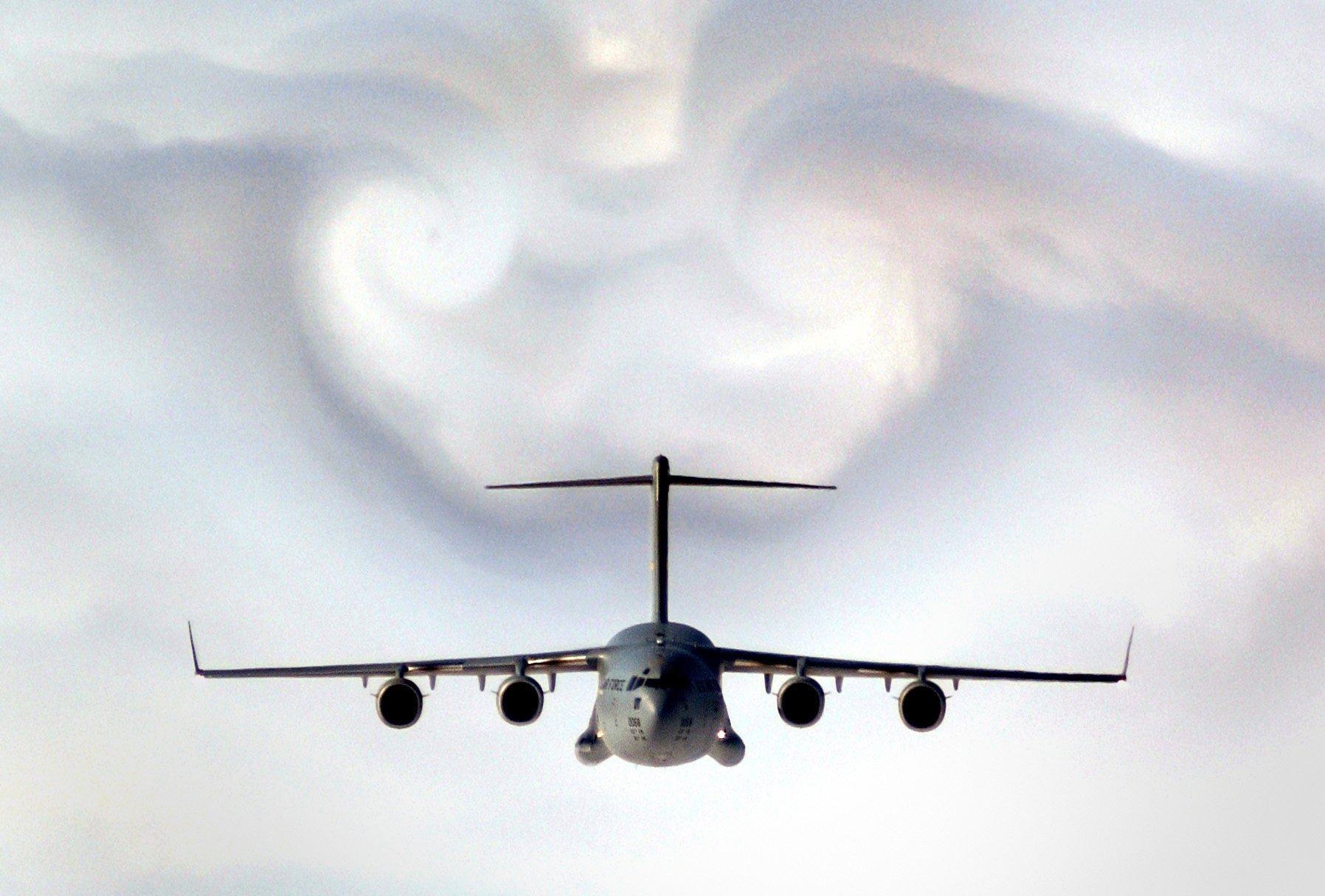 A C-17 Globemaster III parts the clouds over western South Carolina during a training mission Feb. 2. The aircraft is assigned to the state's Charleston Air Force Base. (U.S. Air Force photo/Staff Sgt. D. Myles Cullen)